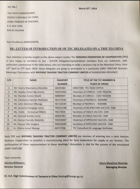 2018年4月20日上午,坦桑尼亞合作社(TFC)聯(lián)合會成員一行11人受邀蒞臨亞澳農(nóng)機考察農(nóng)業(yè)合作項目。唐河縣政府領(lǐng)導(dǎo)狄付長、縣農(nóng)機局方振副局長及亞澳農(nóng)機史炳哲總經(jīng)理全程陪同。