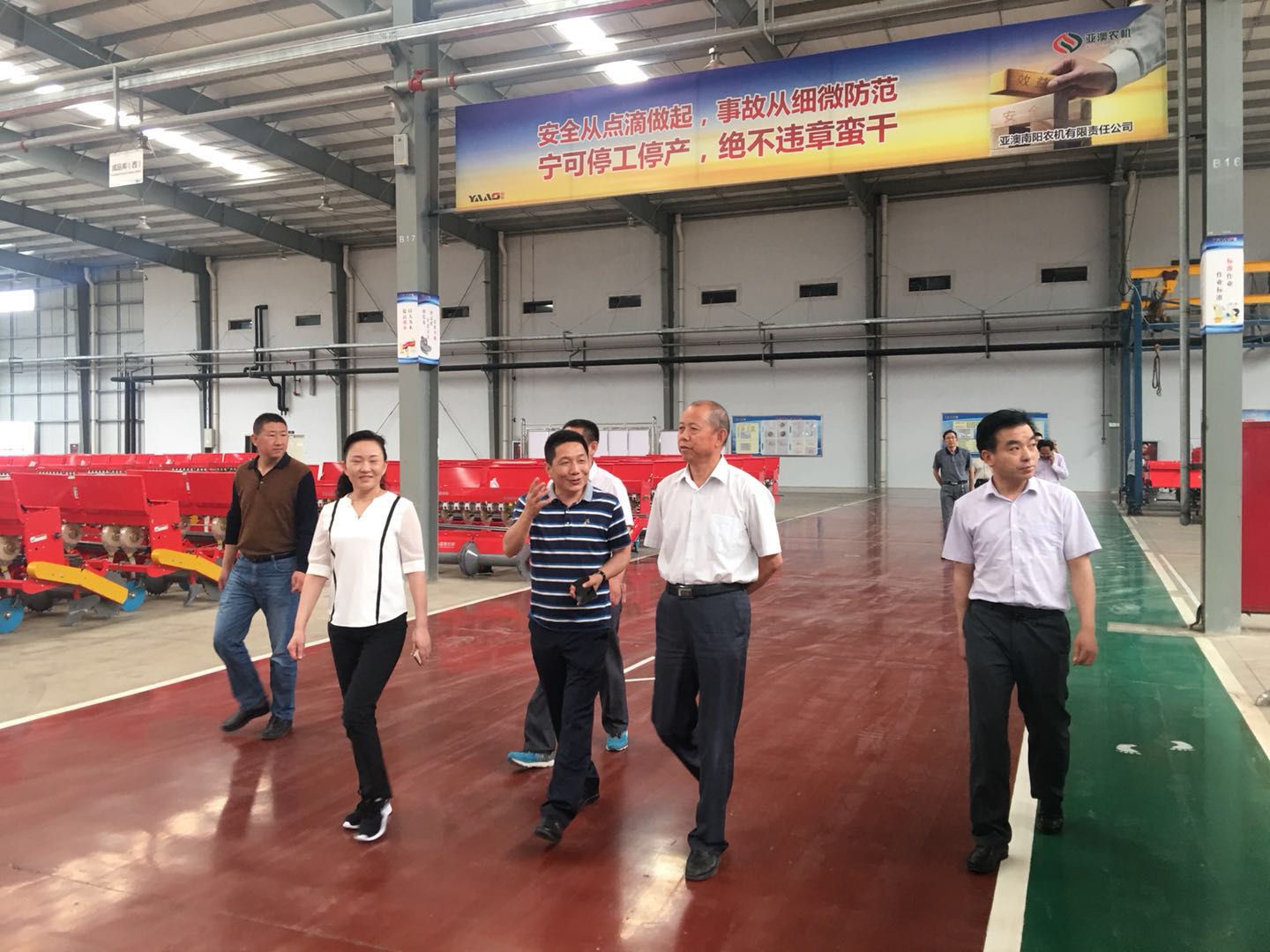2018529日上午,河南省農(nóng)機(jī)局副巡視員程雙進(jìn)在南陽市農(nóng)機(jī)局劉勤局長、縣農(nóng)機(jī)局、縣產(chǎn)業(yè)集聚區(qū)領(lǐng)導(dǎo)陪同下蒞臨亞澳視察亞澳農(nóng)機(jī)智能制造項目發(fā)展建設(shè)情況。