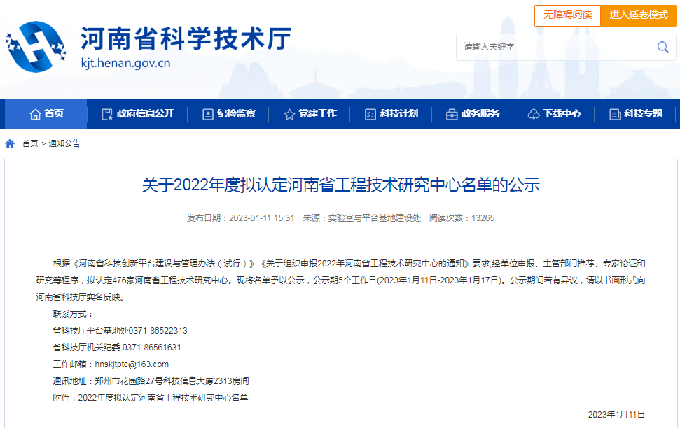 省級工程技術(shù)研究中心