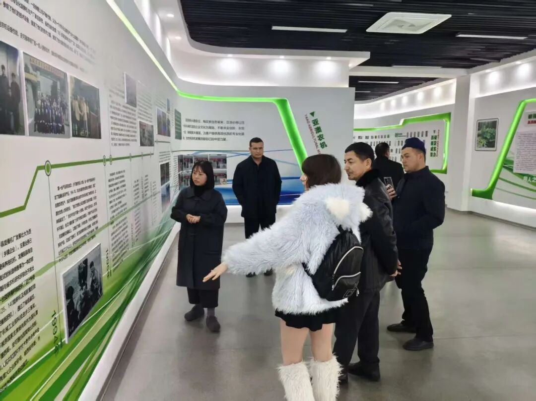 “我們是帶著明確的合作目標(biāo)而來!”代表團(tuán)負(fù)責(zé)人在參觀中坦言。據(jù)了解,該代表團(tuán)來自烏茲別克斯坦一家綜合性農(nóng)業(yè)企業(yè),既是當(dāng)?shù)仡H具規(guī)模的種植大戶,擁有1000公頃連片種植基地,主營業(yè)務(wù)涵蓋棉花等經(jīng)濟(jì)作物種植,同時(shí)涉足農(nóng)機(jī)具銷售業(yè)務(wù),深耕當(dāng)?shù)剞r(nóng)業(yè)市場多年。此次中國之行,核心目的便是尋找優(yōu)質(zhì)農(nóng)機(jī)生產(chǎn)企業(yè),引進(jìn)適配本地作業(yè)需求的裝備,回國后開展銷售推廣。而促成這場跨國對(duì)接的,是西安一家深耕中亞貿(mào)易的物流公司。這家公司是亞澳農(nóng)機(jī)多年合作伙伴,其兼具貨代與農(nóng)機(jī)貿(mào)易的雙重資源,在得知烏方客戶需求后,第一時(shí)間搭建起合作橋梁,促成了此次慕名拜訪。