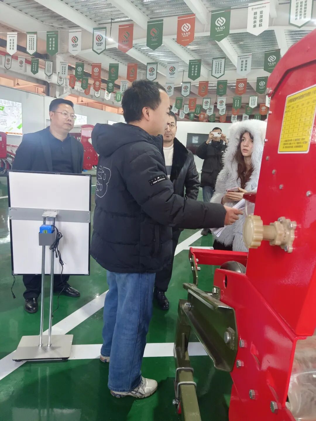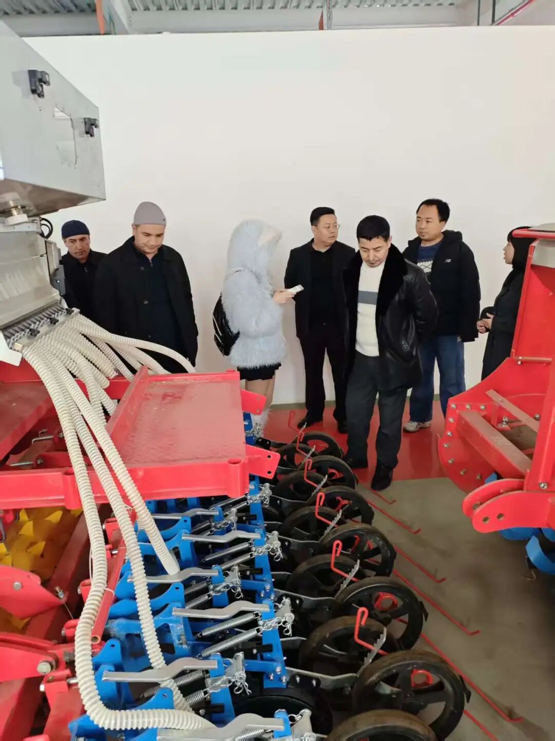 在產(chǎn)品展廳,亞澳農(nóng)機(jī)負(fù)責(zé)外貿(mào)的時(shí)馳經(jīng)理詳細(xì)介紹了公司的核心技術(shù)與產(chǎn)品優(yōu)勢。針對(duì)代表團(tuán)關(guān)注的氣吸式播種機(jī),重點(diǎn)演示了其核心優(yōu)勢:搭載進(jìn)口指夾式排種器,播種精度高達(dá)95%以上,遠(yuǎn)超國家標(biāo)準(zhǔn);創(chuàng)新采用梯堵裝置等專利技術(shù),可實(shí)現(xiàn)旋耕、整地、播種、施肥一體化作業(yè),適配干旱與黏濕等多種土壤環(huán)境,且能根據(jù)需求定制雙苗帶機(jī)型,完全契合烏茲別克斯坦的棉花種植需求?!拔覀兊漠a(chǎn)品在國內(nèi)小麥、玉米主產(chǎn)區(qū)可實(shí)現(xiàn)畝均增產(chǎn)10%-15%,作業(yè)成本降低30%以上,相信在烏茲別克斯坦也能發(fā)揮同樣的效益?!睍r(shí)馳經(jīng)理的介紹讓代表團(tuán)成員頻頻點(diǎn)頭。