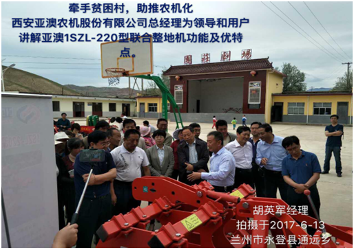 為支持西部貧困地區(qū)農(nóng)機化發(fā)展,2017年6月13日,中國農(nóng)業(yè)機械化協(xié)會聯(lián)合西安亞澳、甘肅福祥等五家國內知名農(nóng)機裝備企業(yè)為甘肅省永登縣通遠鄉(xiāng)團莊村捐贈了價值約50萬元的農(nóng)機產(chǎn)品和現(xiàn)金。